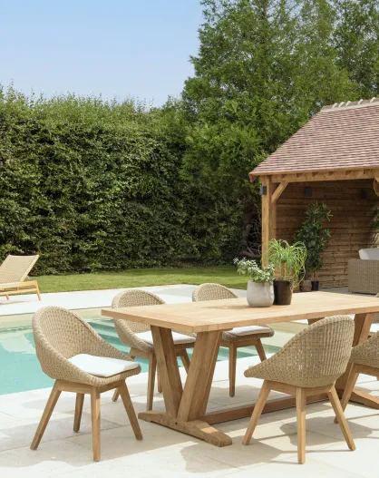 Garten-Lounge-Set für 6/8 Personen — 1 rechteckiger Garten-Esstisch — Beige/Weiß
