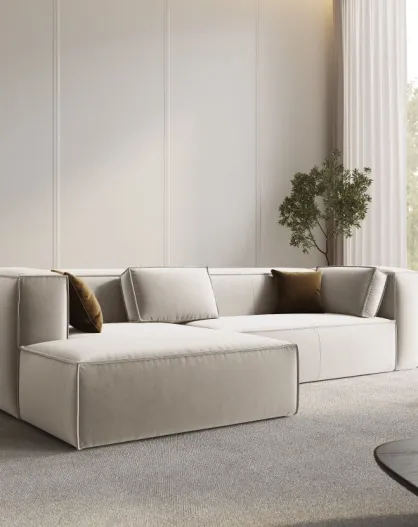 Verbena 4-Sitzer-Ecksofa links aus Samt Ecru - 282x166x73