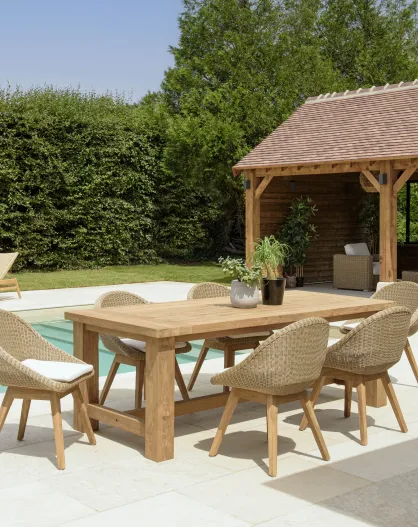 Garten-Lounge-Set für 6/8 Personen — 1 rechteckiger Garten-Esstisch — Beige/Weiß