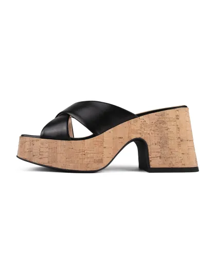 It's No Secret Pantoletten aus Leder, 7 cm Absatz, Schwarz