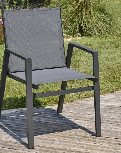 FLORIDE Stapelbarer Gartensessel aus Textilen und anthrazitgrauem Aluminium - 103x62x100cm