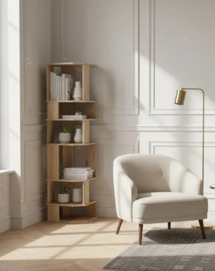 Natürlich strukturiertes Bücherregal - Mangoholz - Aranyabeige - 46x46x178 cm