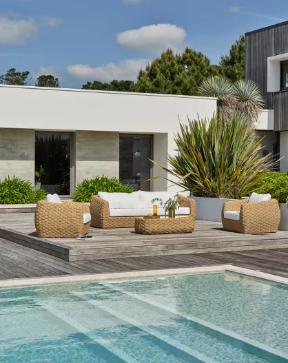 RAMATUELLE Gartenlounge mit 5 Sitzplätzen aus Aluminium und geflochtenem Kunstharz in Braun und Weiß