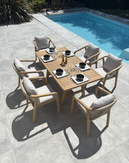 SERENA 6-Sitzer-Gartengarnitur aus Akazienholz in Braun und Grau