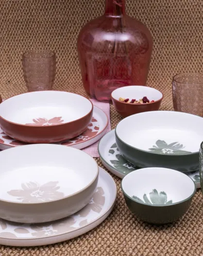 Hanae 30-teiliges Geschirrset aus rosa/beige/grünem Porzellan