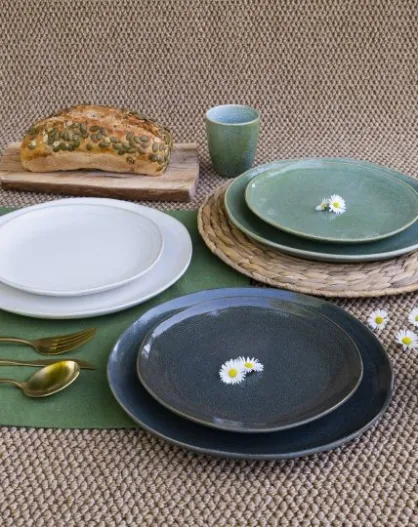 Set mit 6 grünen Desserttellern aus Keramik von Mila - D.20,5 cm