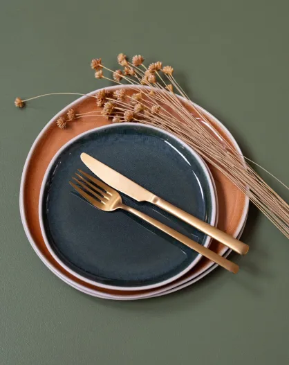 Set mit 6 kleinen Desserttellern Coralia aus orange/grünem Porzellan, D.20,5 cm