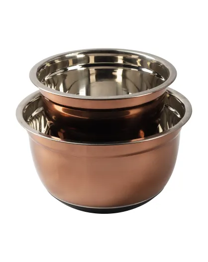 2 verkupferte Rührschüsseln mit rutschfestem Boden