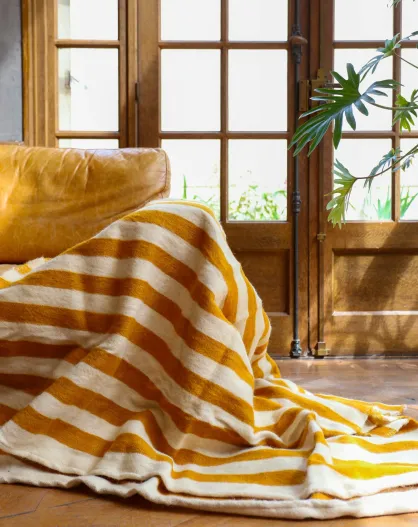 Berberdecke mit Senfstreifen - 300x200cm