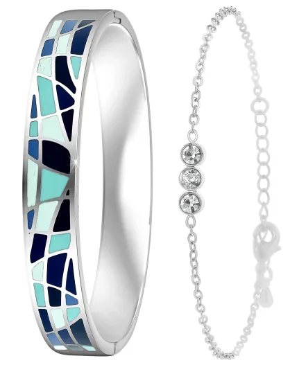 Set mit 2 Edelstahlarmbändern B2164 silber/mehrfarbig