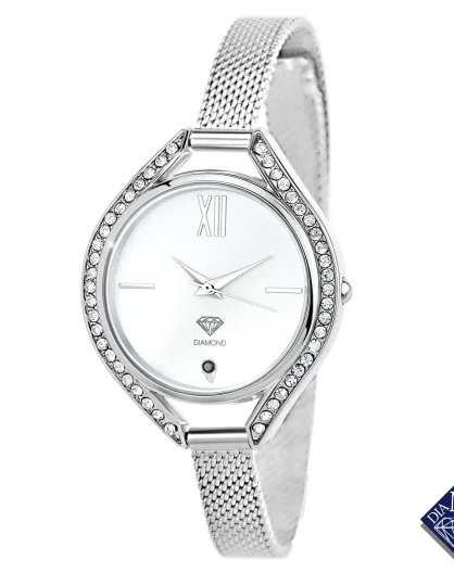 Lana-Uhr, verziert mit einem echten schwarzen Diamanten und 46 funkelnden Silberkristallen