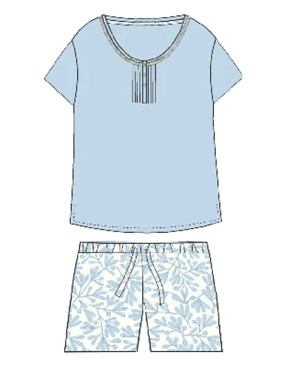 Kurzärmliger Pyjama, blaues Frühlingsblattmuster