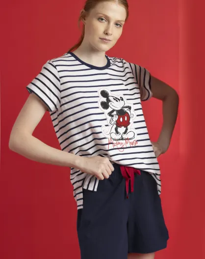 Marineblauer Kurzarm-Pyjama mit allgemeinem Muster
