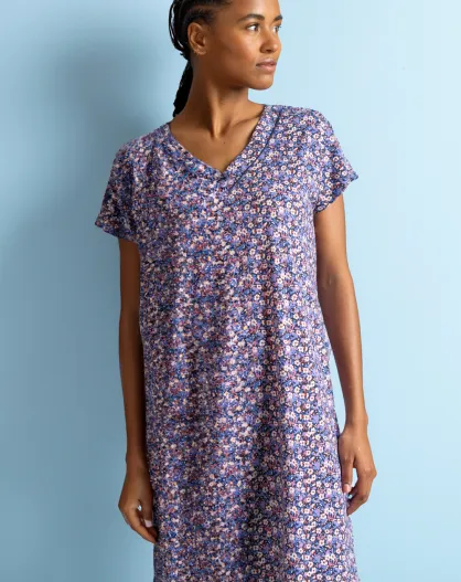 Liberty-Kleid mit kurzen Ärmeln in Blau und Rosa