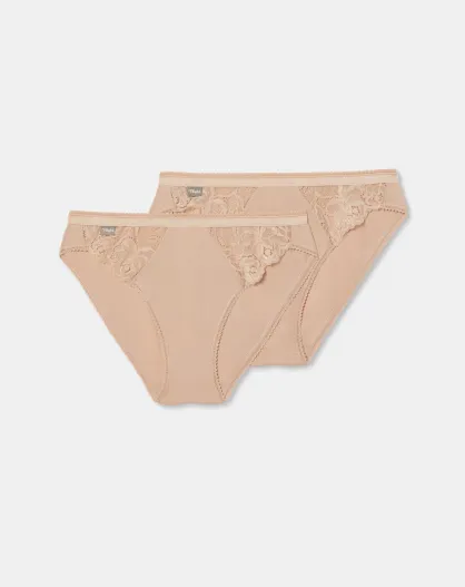 2 beigefarbene Höschen aus Baumwolle und Spitze