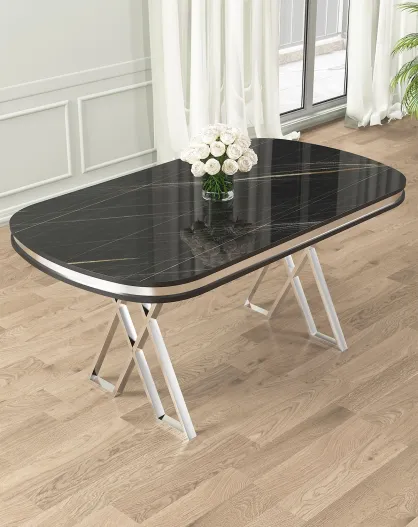 Zae Esstisch schwarz/Chrommarmor - 168x76x90 cm