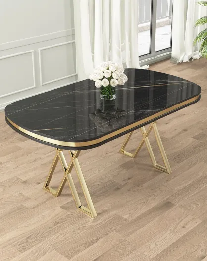 Zae Esstisch schwarz/goldener Marmor - 168x76x90 cm
