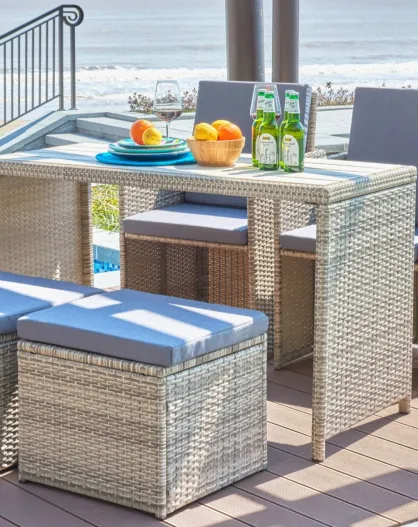 4-Sitzer-Essgruppe mit naturgrauem Kissen