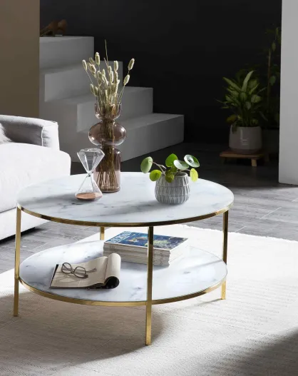 Fever - Couchtisch mit 2 Regalen weiß/gold - D.80 cm