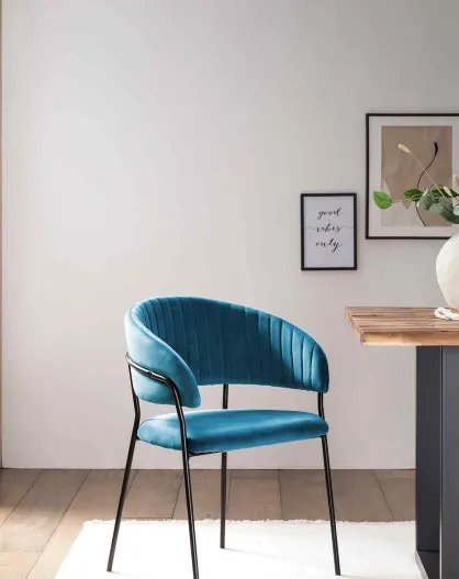 Fever - Samtstuhl mit türkis/schwarzer Rückenpolsterung - 55x50x80 cm