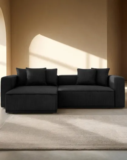 Cabrio-Ecksofa für 3 Personen, aus Kord, links, mit schwarzem Ribes-Kofferraum — 266 x 160 x 88 cm