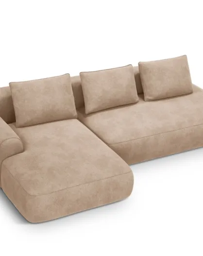 Orion Ecksofa für 5 Personen, umwandelbar, aus Samt, links, mit Kofferraum Orion, dunkelbeige — 275 x 142 x 84 cm