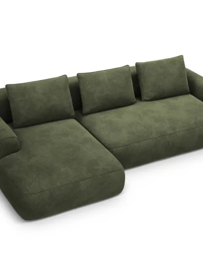 Orion Ecksofa für 3 Personen, umwandelbar, aus Samt, links, mit grünem Orion-Kofferraum, 275 x 142 x 84 cm