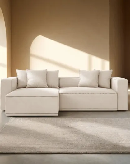 Ausziehbares 3-Sitzer-Ecksofa rechts mit Kofferraum Ribes hellbeige - 266x160x88 cm