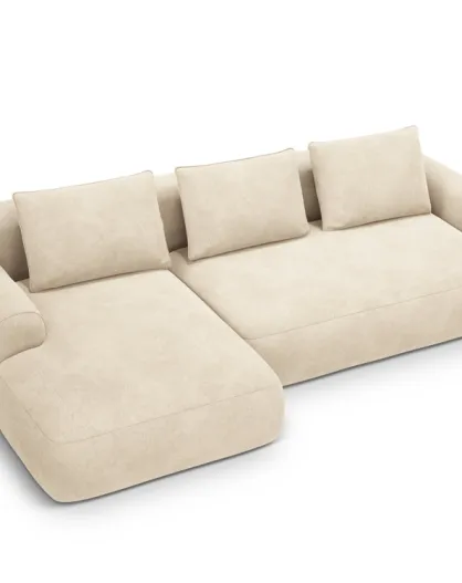 Orion Ecksofa für 3 Personen, umwandelbar, aus Samt, links, mit Kofferraum Orion, hellbeige, 275 x 142 x 84 cm