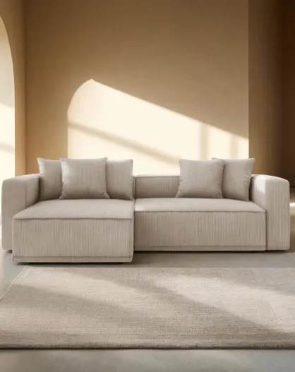 Cabrio-Ecksofa für 3 Personen, aus Kord, links, mit Ribes-Truhe, dunkelbeige — 266 x 160 x 88 cm