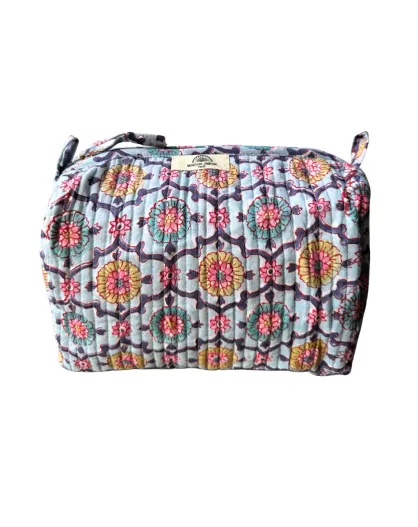 Mehrfarbige Toilettentasche mit indischem Blockdruck