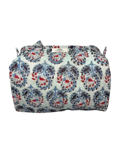 Indische Toilettentasche mit blauem Blockdruck