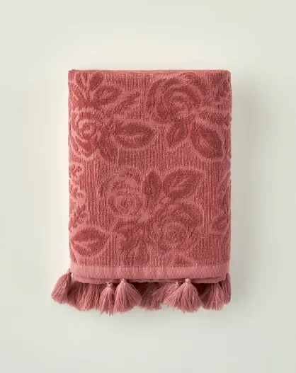 Jacquard-Handtuch in Burgunderrosa, 30 x 50 cm
