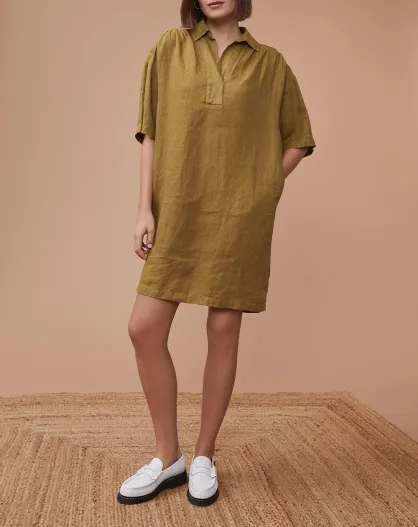 Laureen khakifarbenes Kleid aus 100% Leinen
