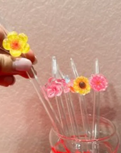 Strohhalm aus Glas mit gelber Blume, 20 cm