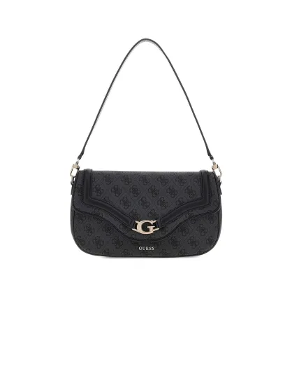 Dea Schultertasche mit Überschlag und kohlefarbenem Logo - 29x15x6 cm