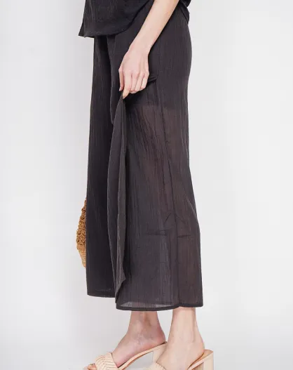 Stéphanie schwarze Leinenhose mit hoher Taille