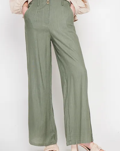 Michèle hellkhakifarbene, lockere Leinenhose mit elastischem Bund