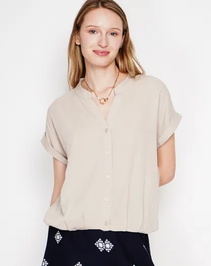 Josée beigefarbenes Hemd aus Leinenmischung mit tunesischem Kragen