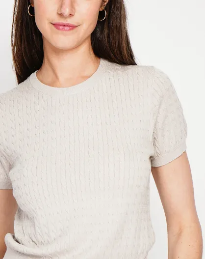 Valérie beiger Rundhalspullover aus Leinenmischung mit Zopfmuster