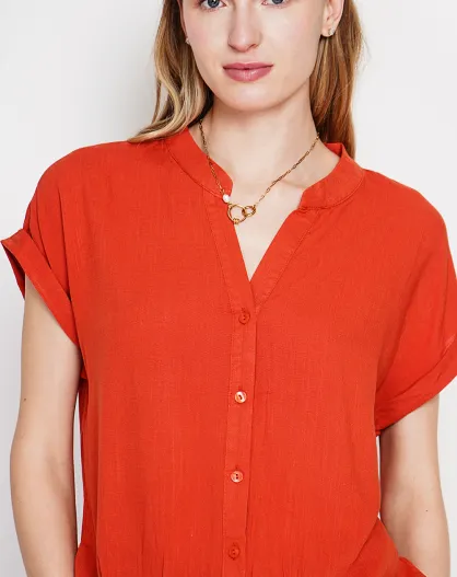 Josée orangefarbenes Hemd mit tunesischem Kragen aus Leinenmischung