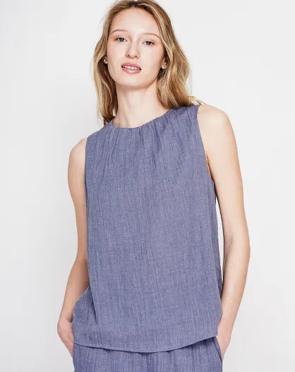 Sandrine Blue Jeans S und M Rundhalsoberteil aus Leinen
