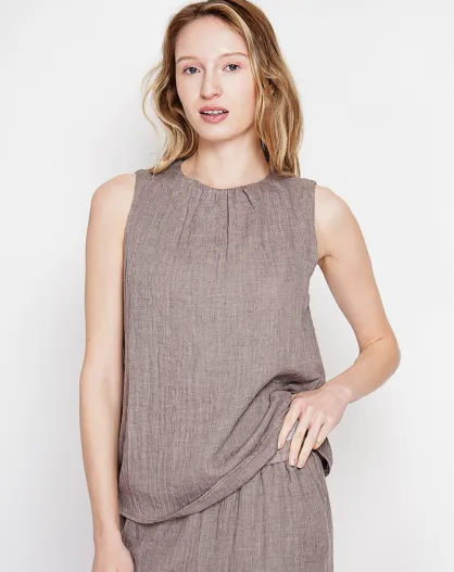 Sandrine Cacao Leinen-Top S und M mit Rundhalsausschnitt