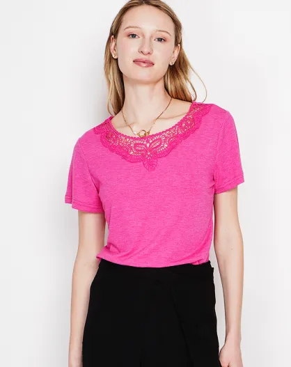 Sylvie Fushia Rundhals-T-Shirt aus Leinenmischung