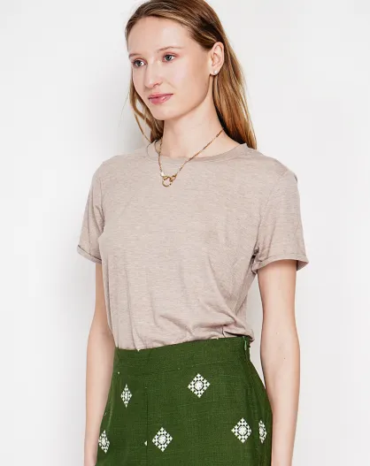 Beiges T-Shirt mit Rundhalsausschnitt aus Leinenmischung Nicole