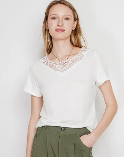 Sylvie weißes Rundhals-T-Shirt aus Leinenmischung