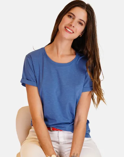 Francine Marine Rundhals-T-Shirt aus Leinenmischung