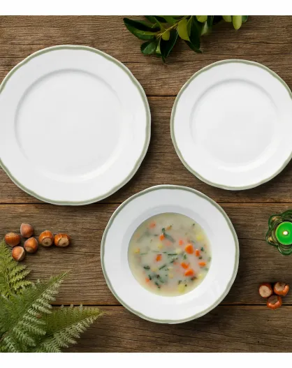 Tafelset aus Porzellan - Scala Teller Weiß/Grün - 18-teilig