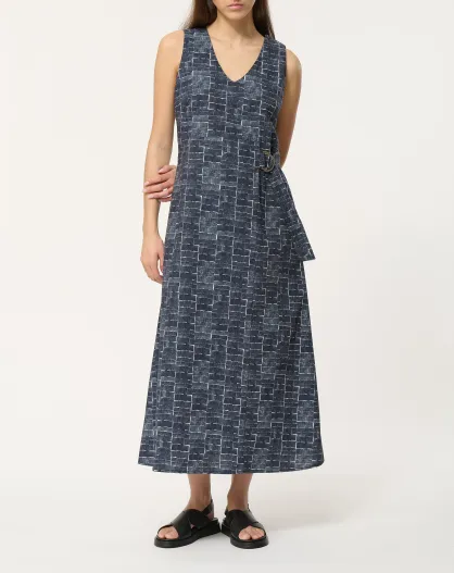 Jopongu marineblaues, tailliertes langes Baumwollkleid in Neo-Plaid