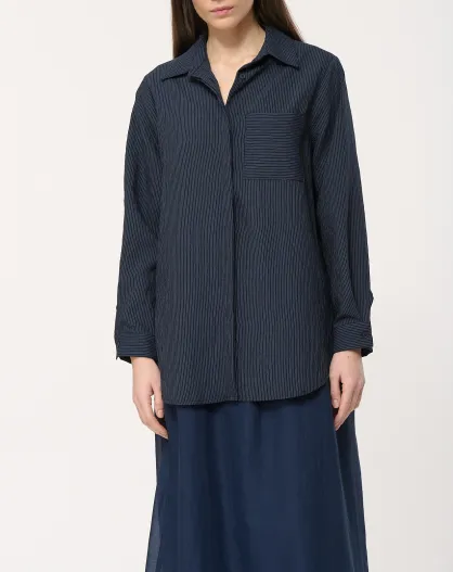 Dunkelblaues Oversize-Nadelstreifenhemd aus Modal